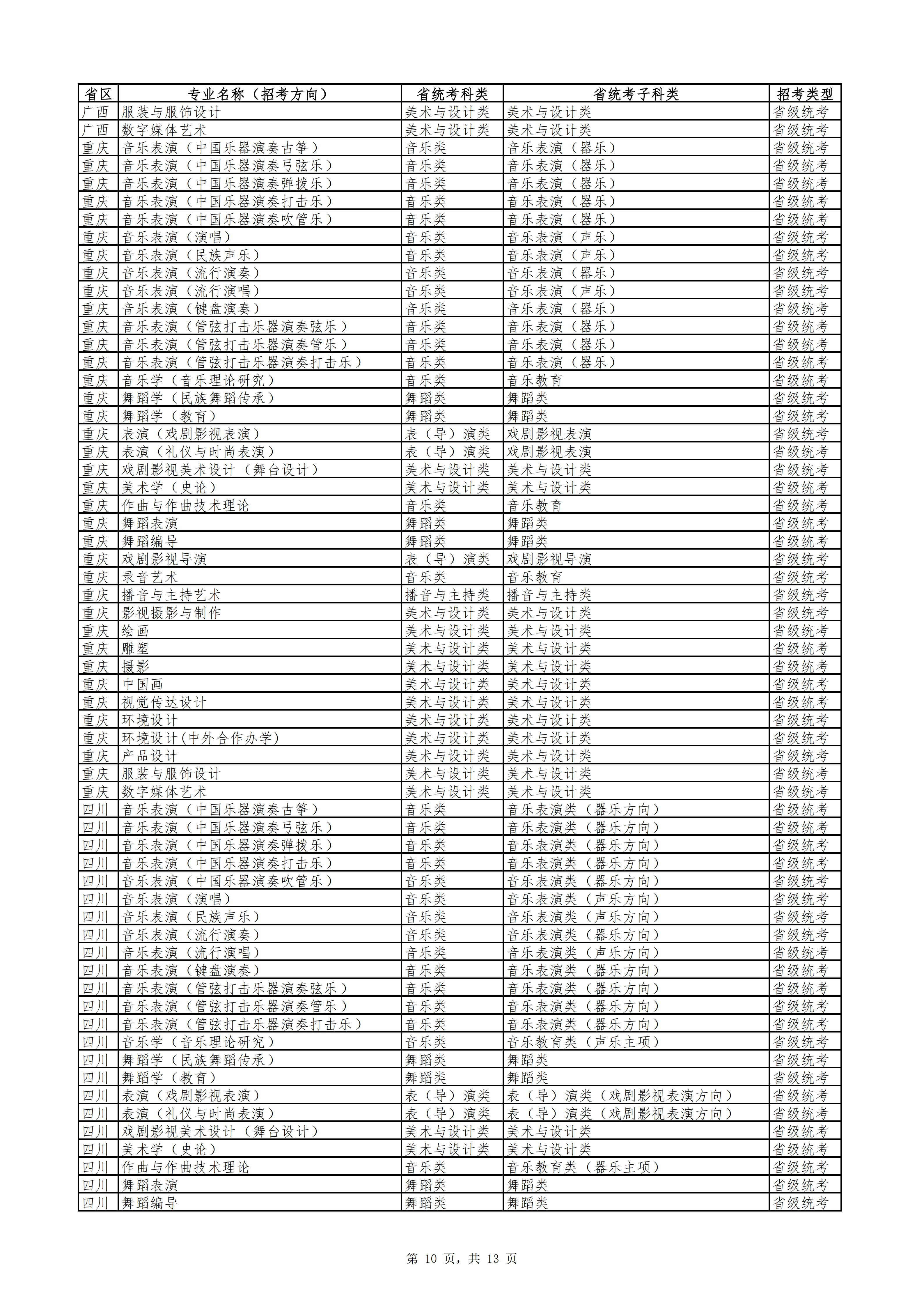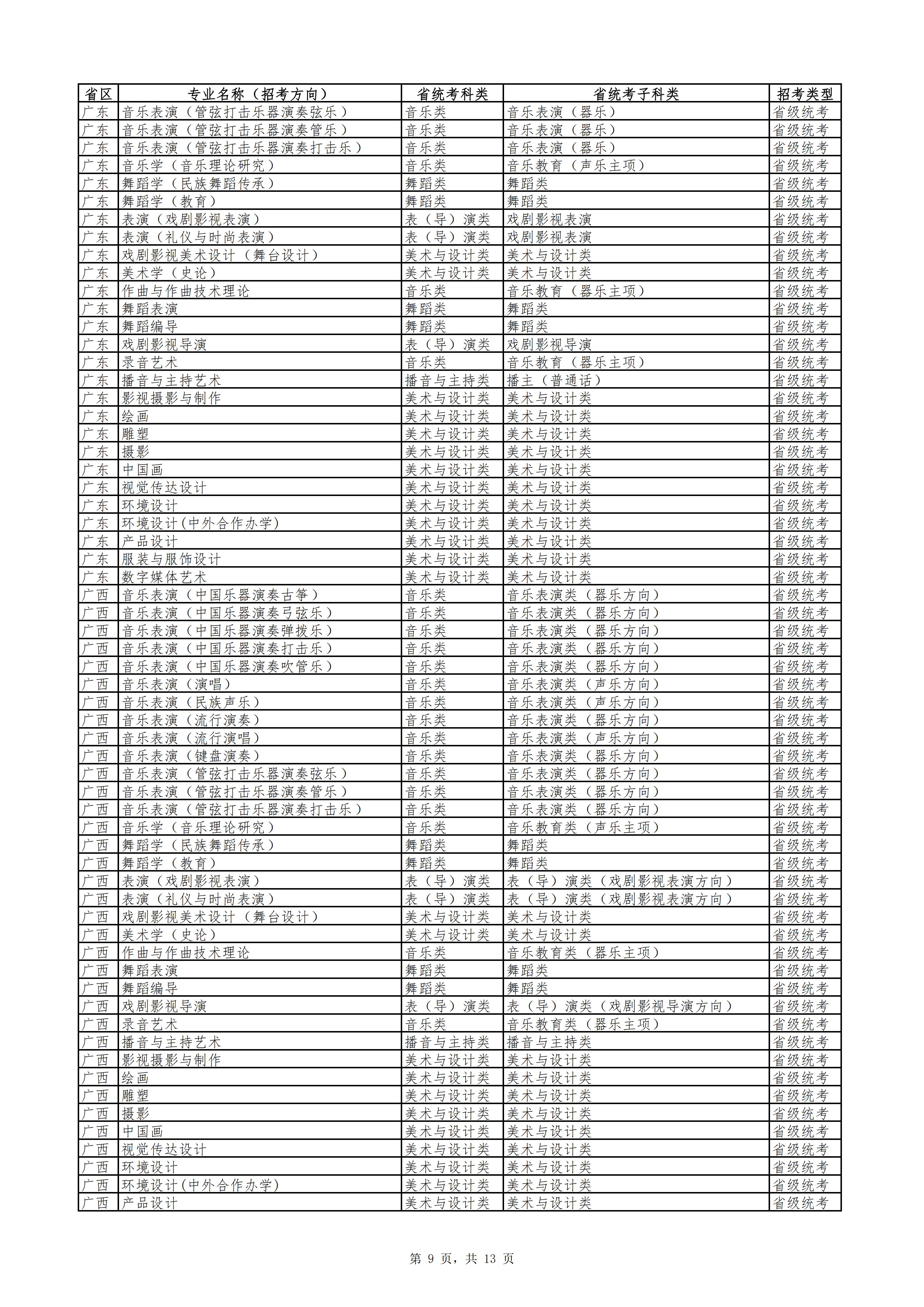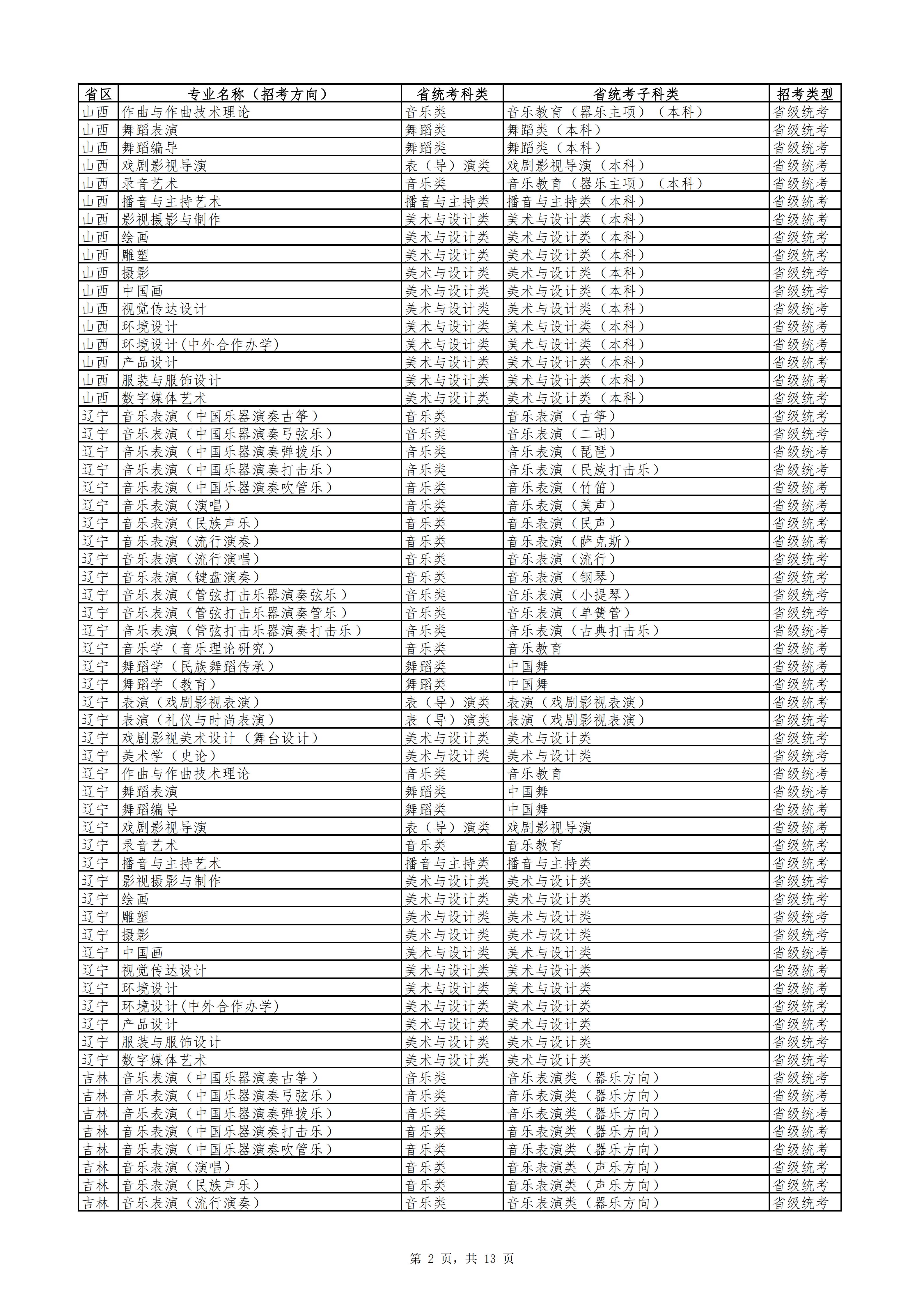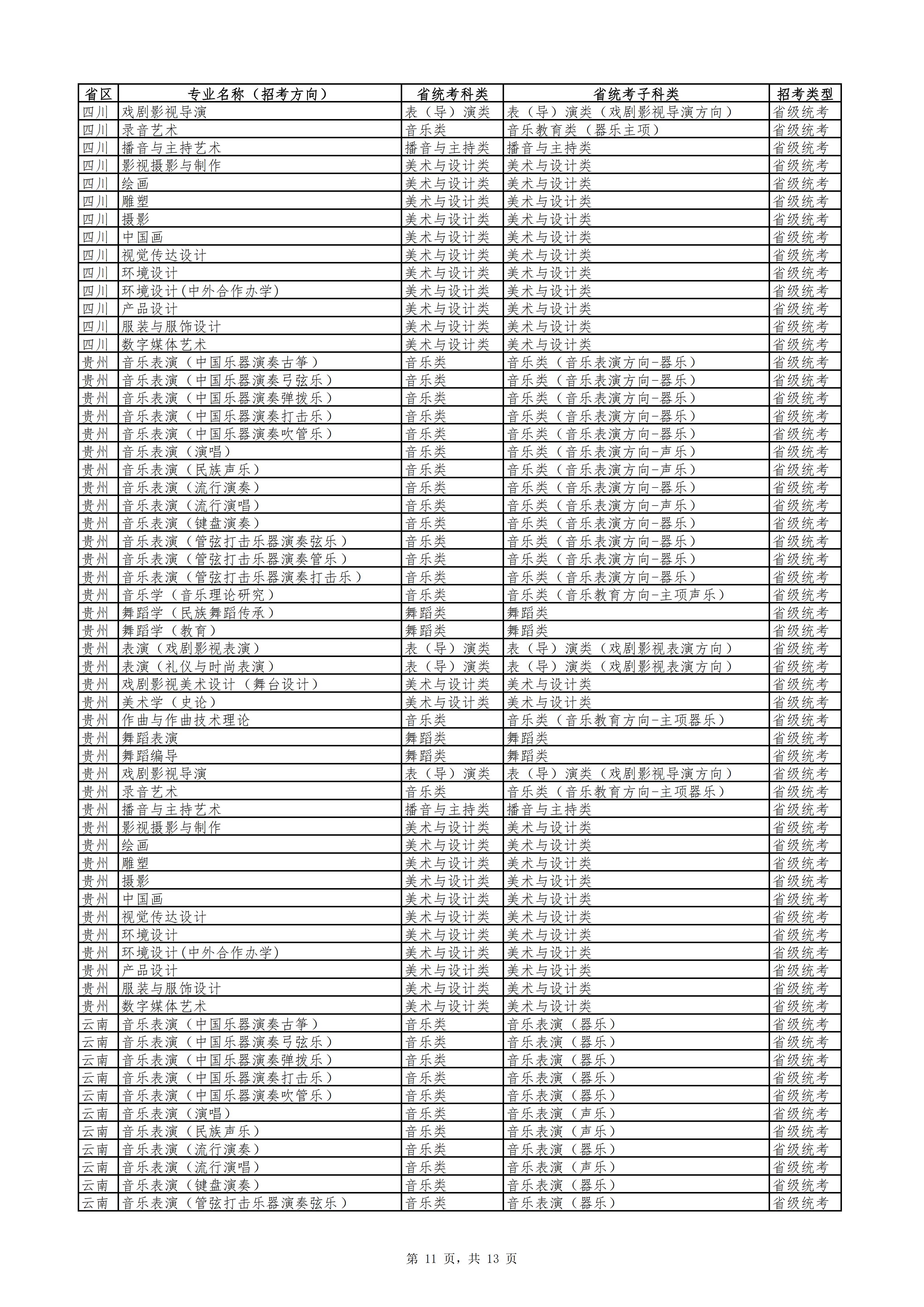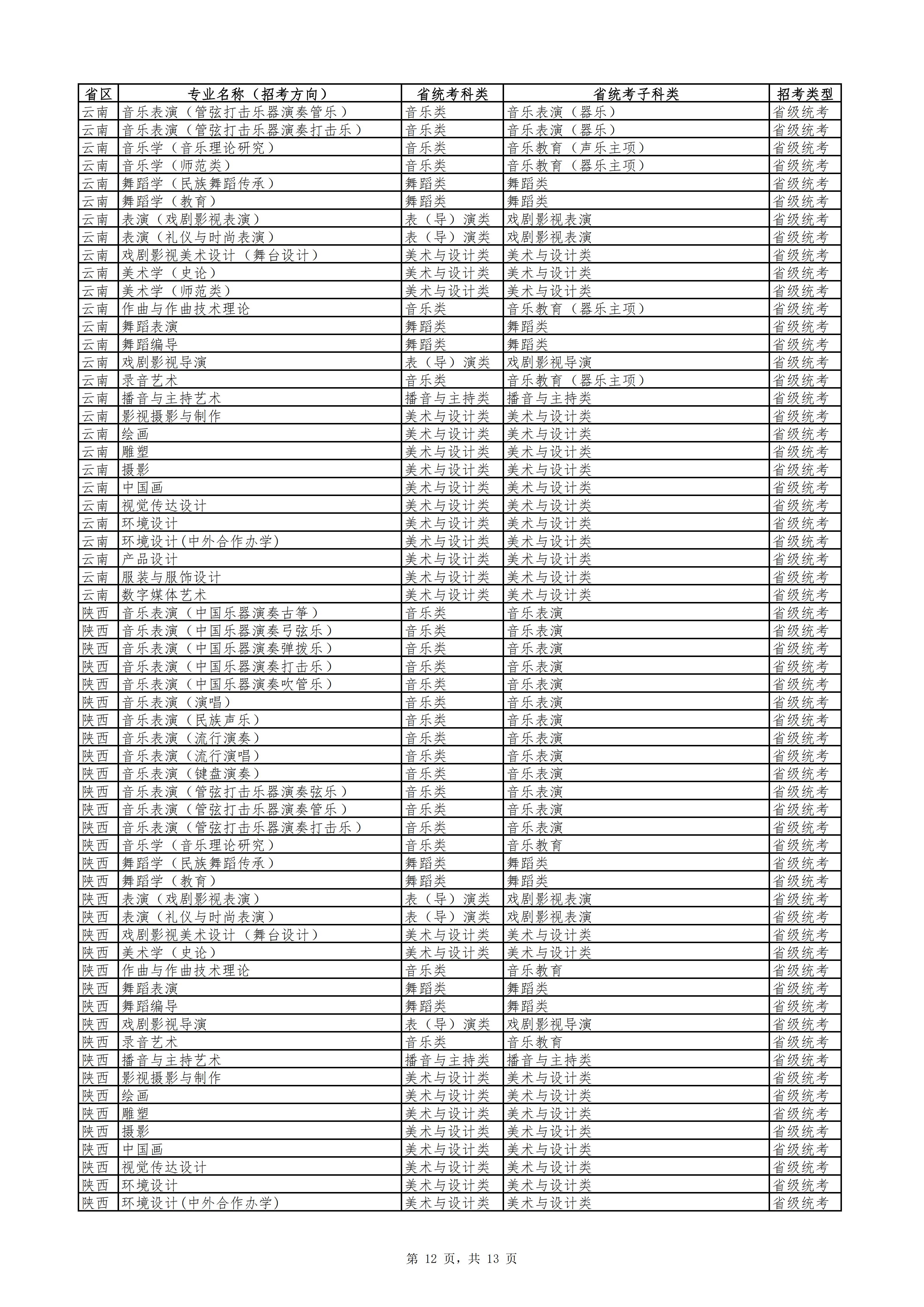 2.云南艺术学院2026年艺术类专业与各省统考科类对照表