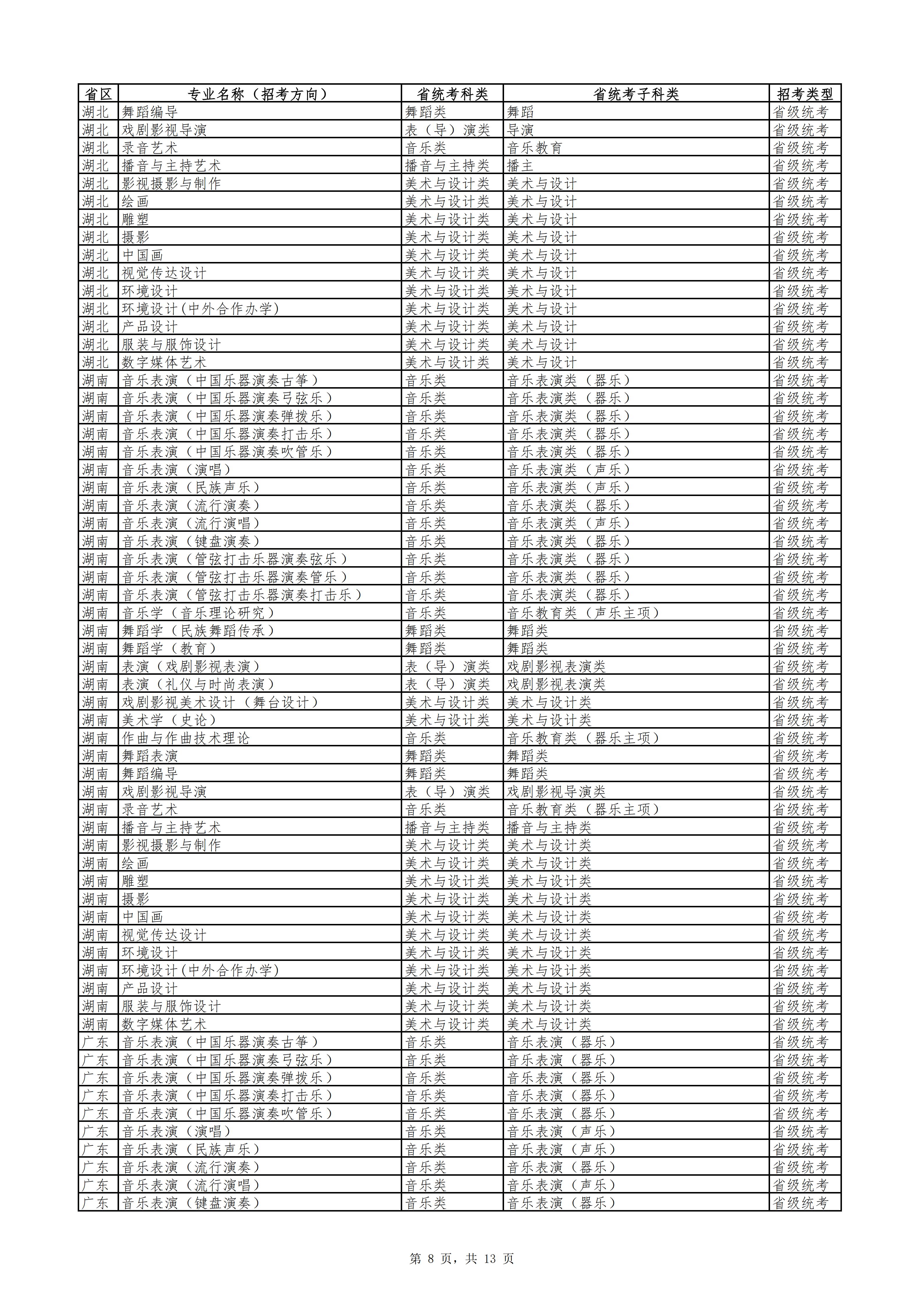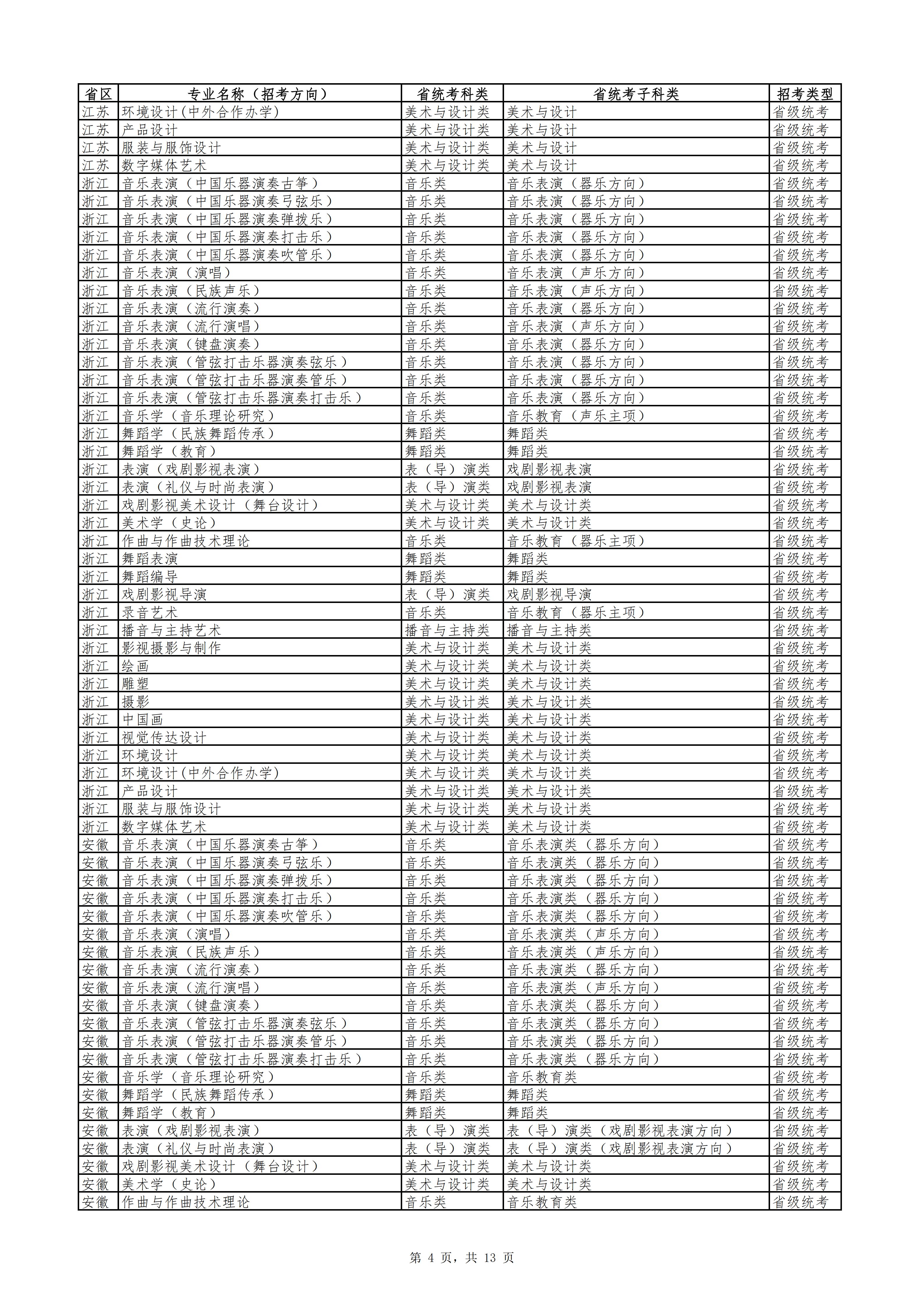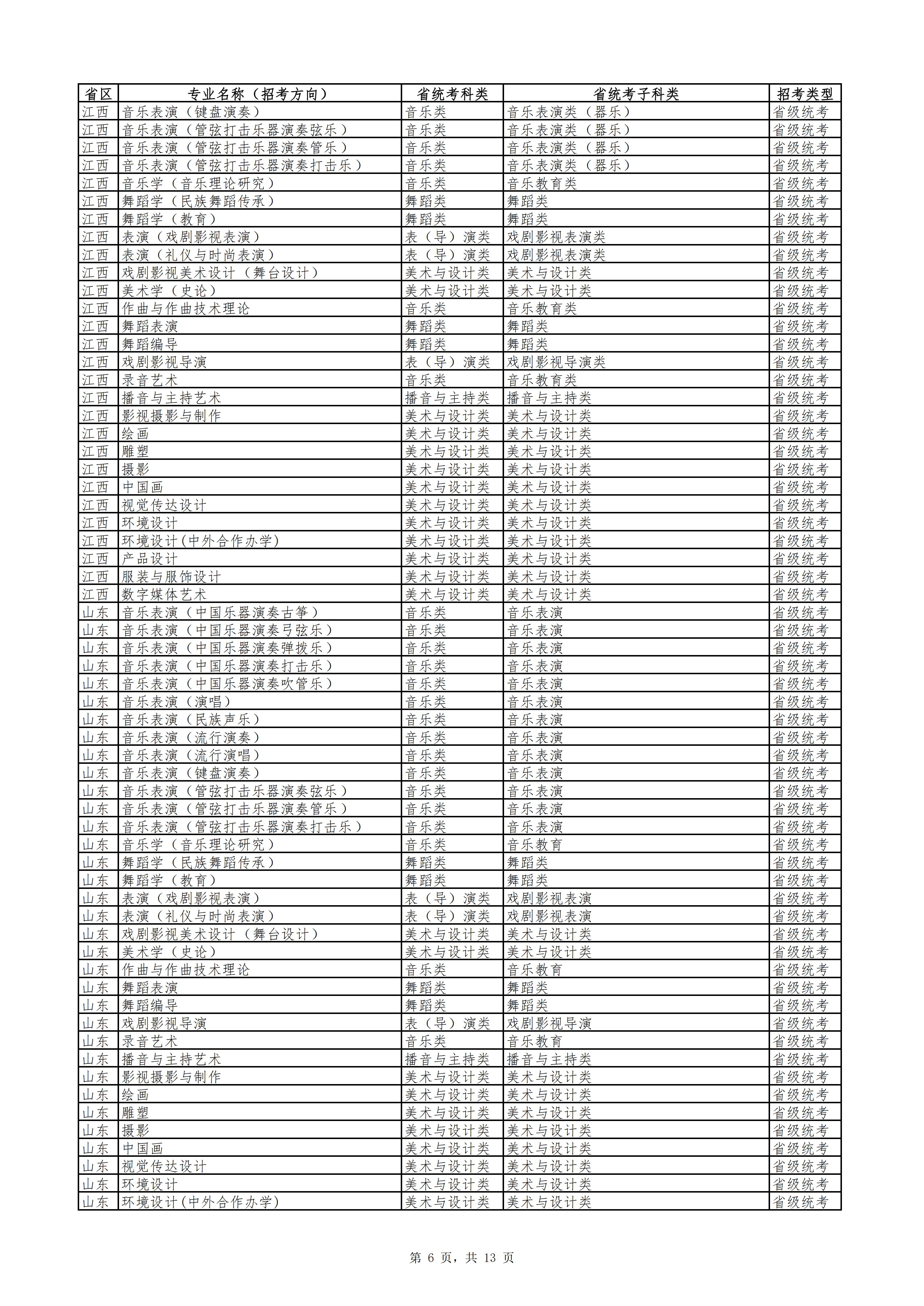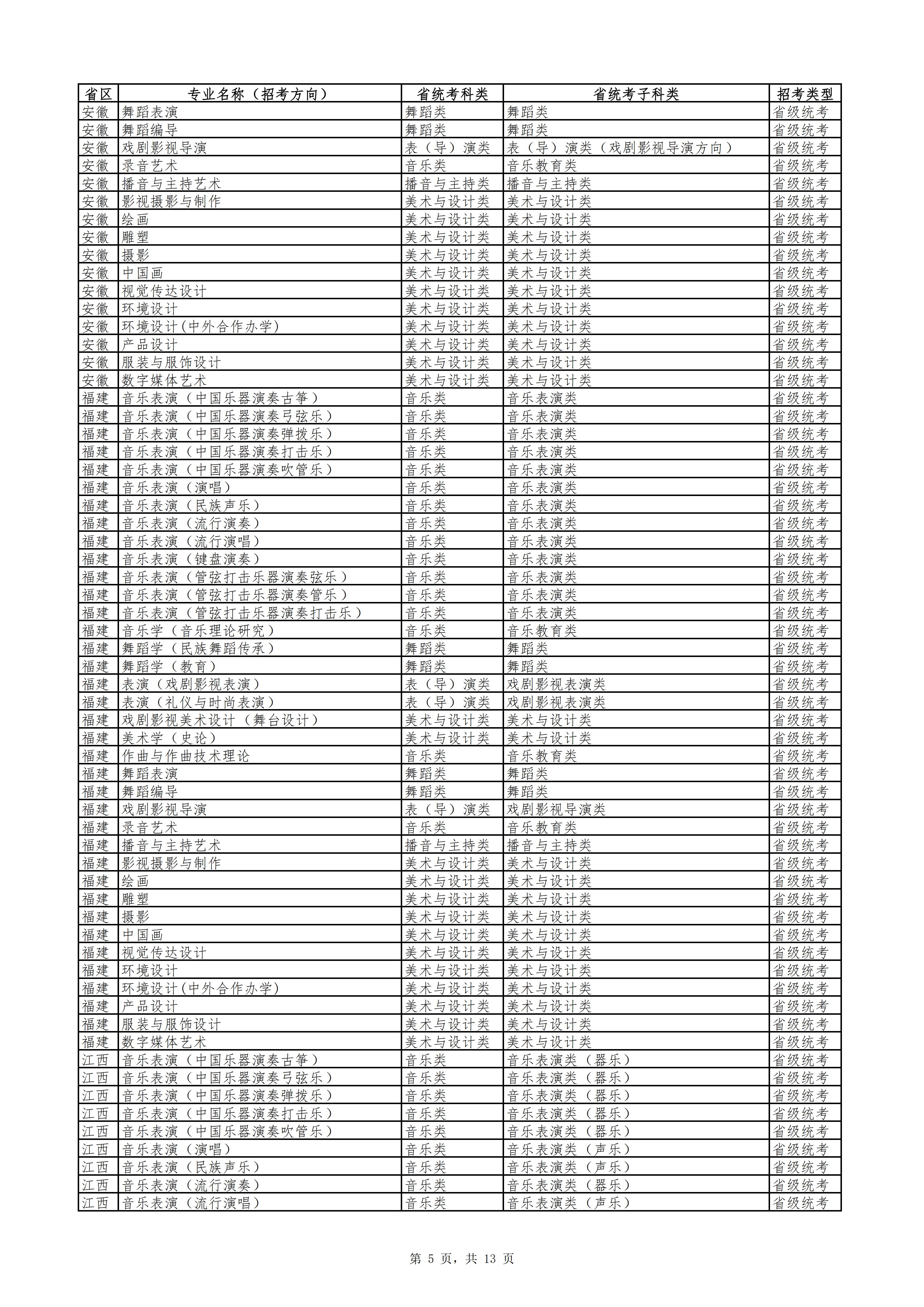 (二)参加各省(区、市)艺术类省级统考,录取时使用各招生省(区、市)相应类别统考成绩作为专业成绩