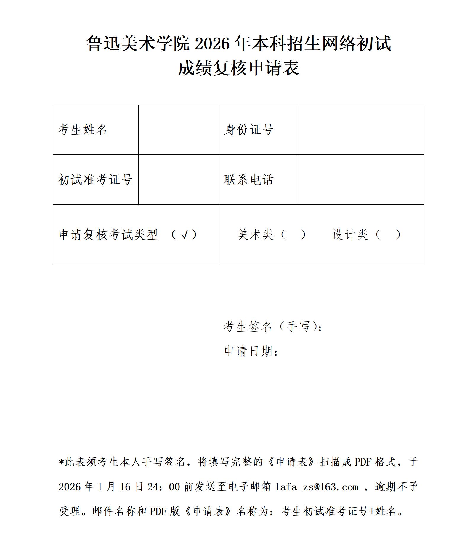 鲁迅美术学院2026年本科招生网络初试结果查询公告