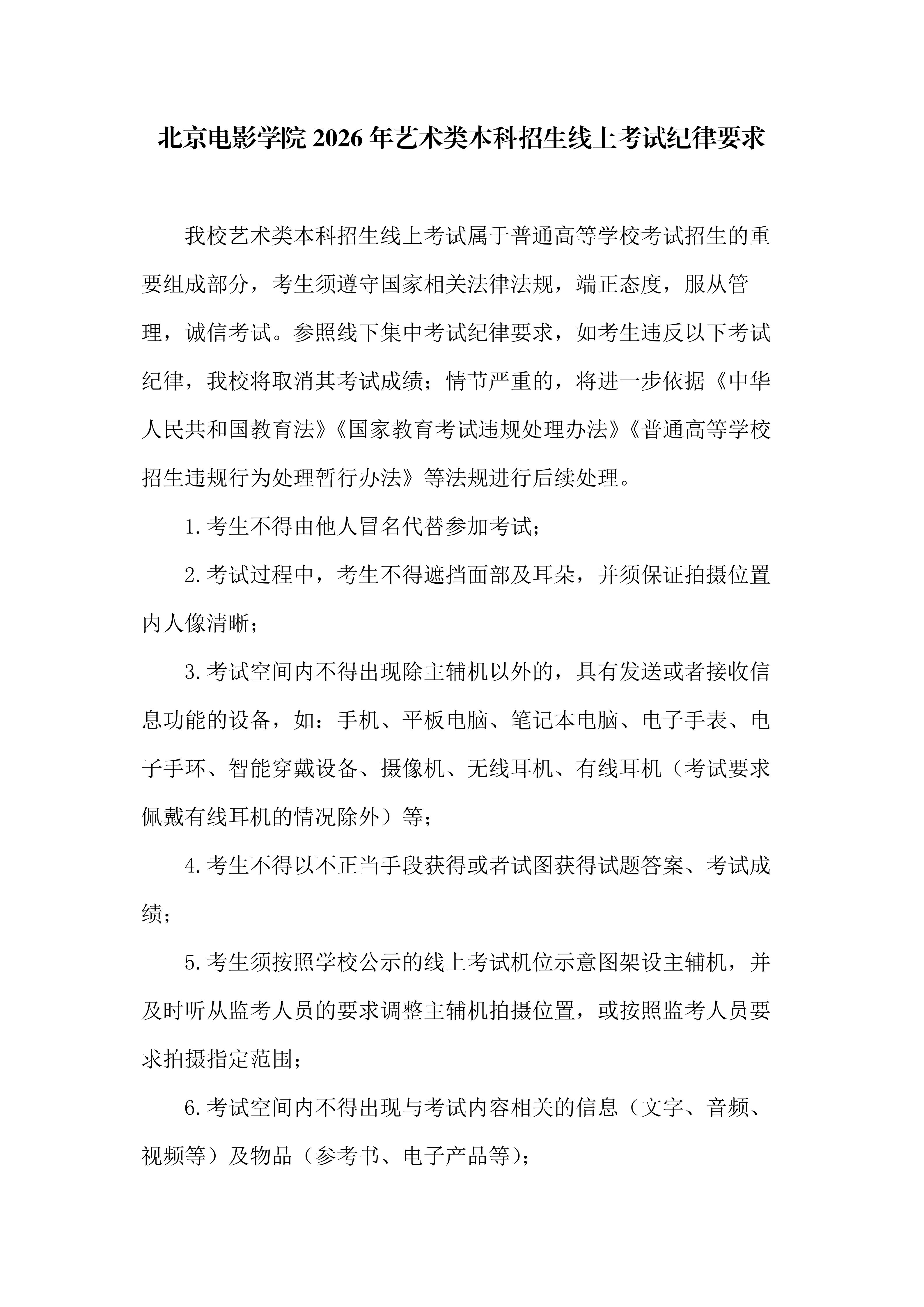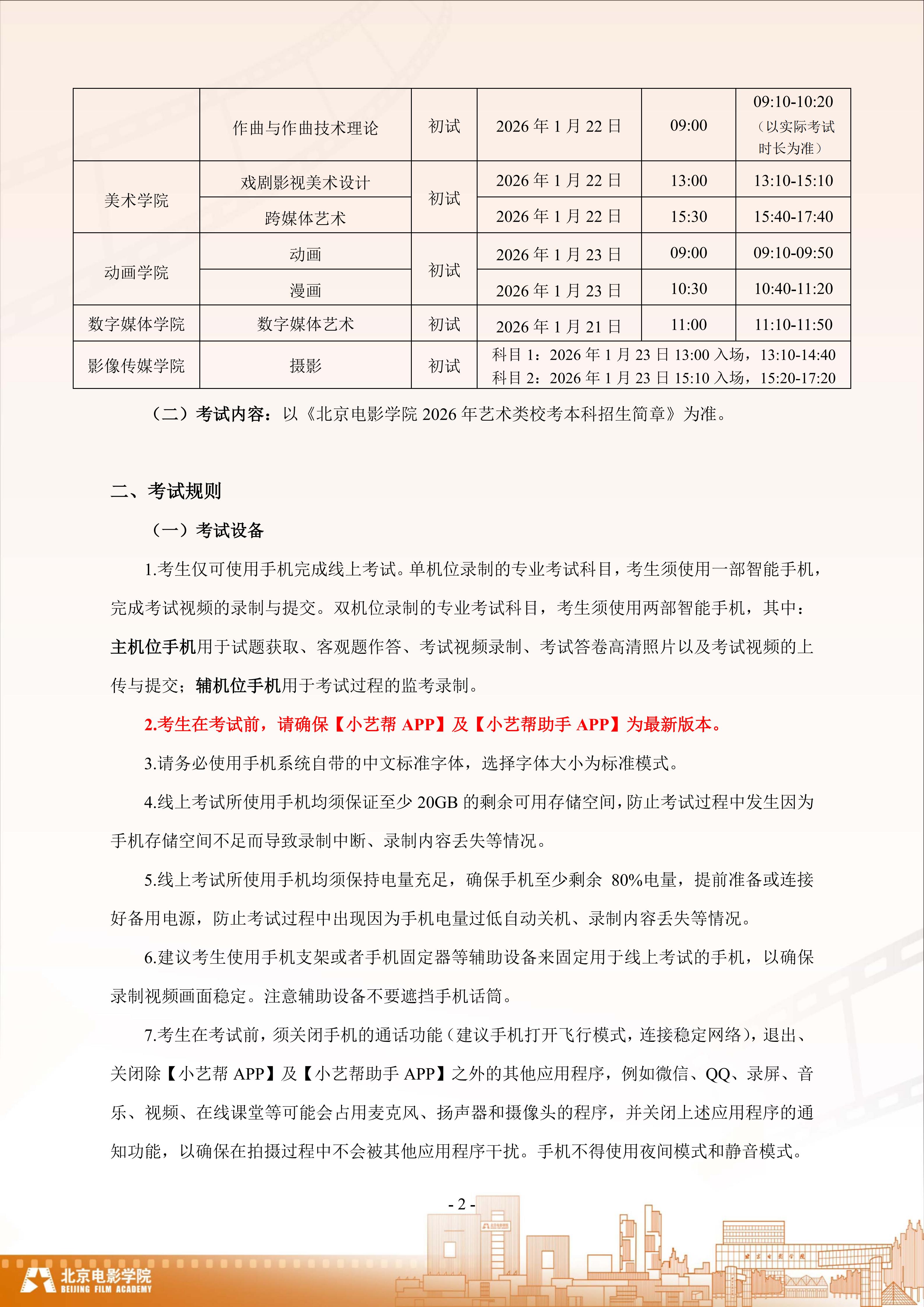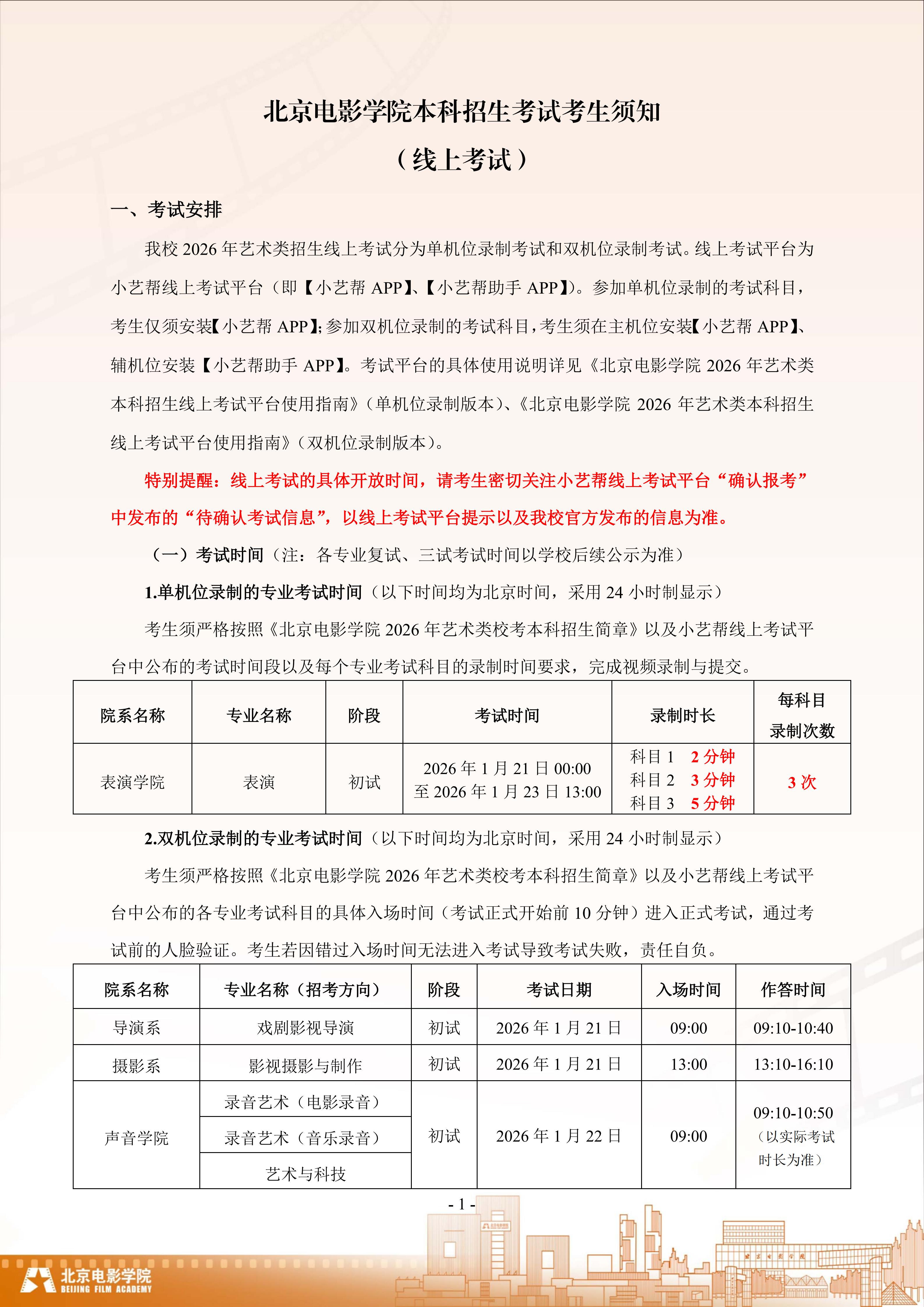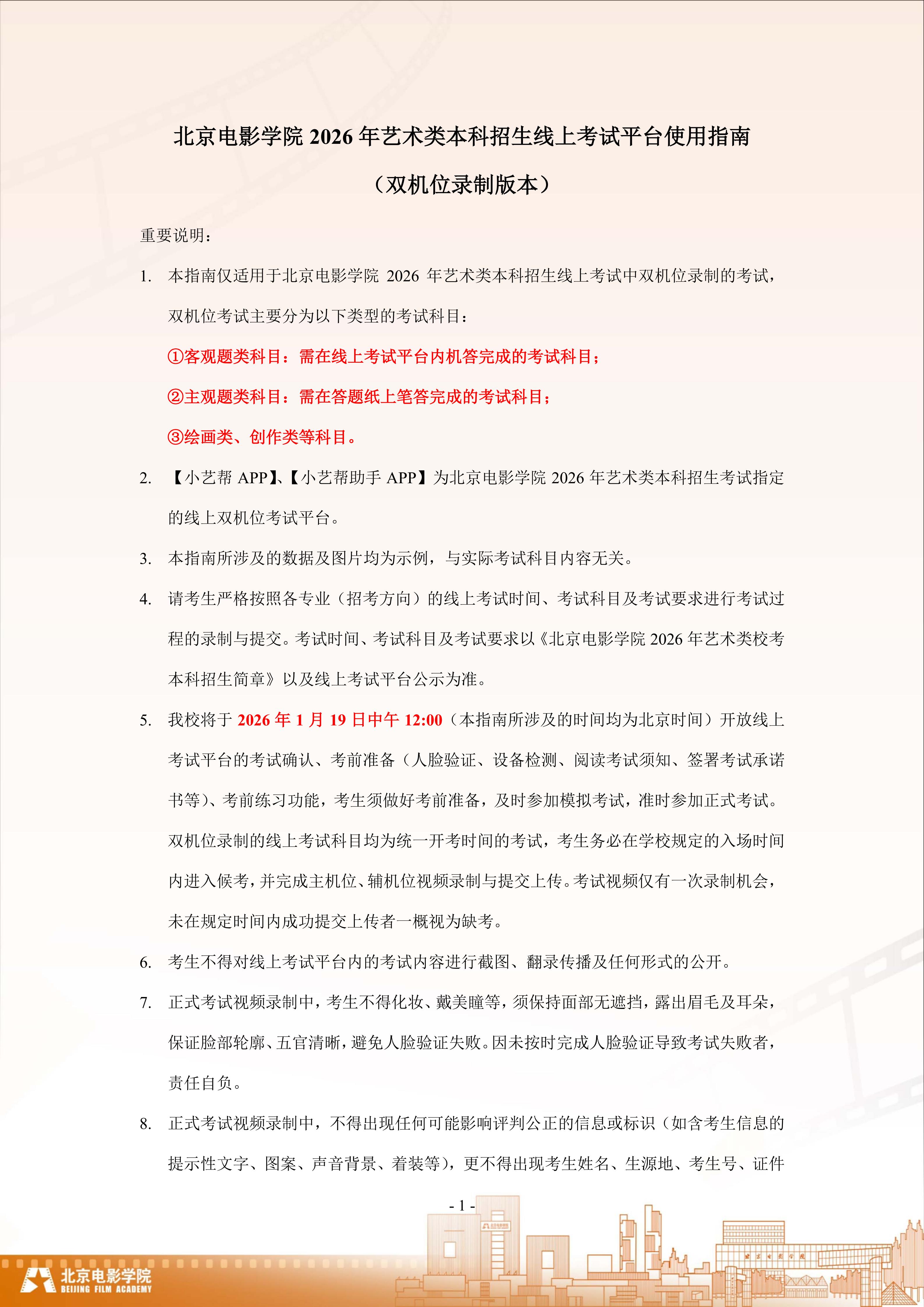 北京电影学院关于2026年艺术类本科招生线上考试平台开放的通知