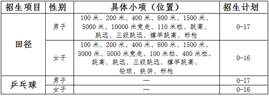 报考我校田径、乒乓球项目的考生专业测试参加我校组织的校考。