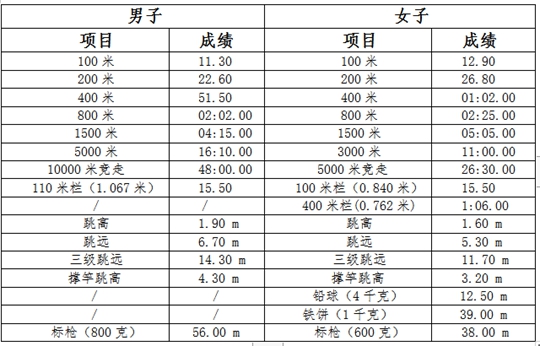 同时,报考田径项目的考生须满足相关小项的报名起点成绩: