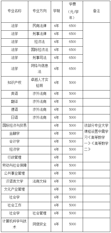 考生可在公布的招生专业目录中选择相关专业进行志愿填报,具体专业介绍请登录华东政法大学招生网“学院介绍”栏目查询。专业目录如下: