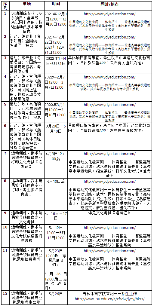 3.我校对录取的非吉林省现役专业运动员进行全日制教育培养,不按照吉林省学籍化运动员管理方式培养,请非吉林省现役专业运动员慎重报名。
