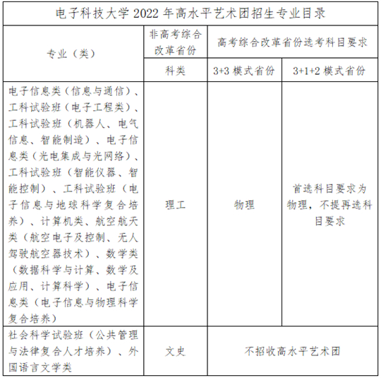 2.我校2022年高水平艺术团以“电子科技大学(国标码10614)”名称进行招生,其中:
