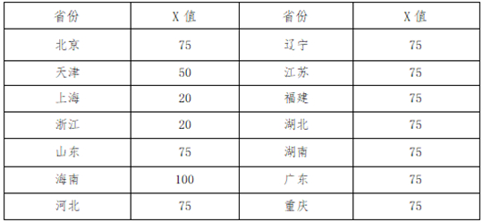 (2)对于北京、天津、上海、浙江、山东、海南、河北、辽宁、江苏、福建、湖北、湖南、广东、重庆等十四个高考综合改革省份的考生,高考投档成绩须达到生源地省份确定的高水平艺术团相关最低录取控制参考分数线上X分及以上(各省份X值详见下表),经生源地省份省级招生考试机构审批同意,我校予以录取,并满足考生填报的前三个专业志愿之一(考生不得重复填报同一专业)。